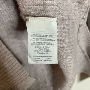 Gray light pink color knit sweater. Material is alpaca, merino wool, nylon, and viscose blend. Scoop neck style. Comfy and perfect for casual wear.