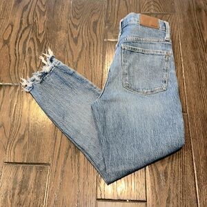 Madewell high rise slim crop boyfriend Blue Denim Jeans size 26 raw hem