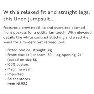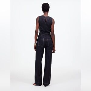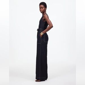 Madewell jet black Contrast-Stitch Relaxed Straight-Leg Jumpsuit in Linen size 2
