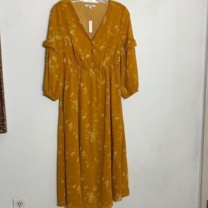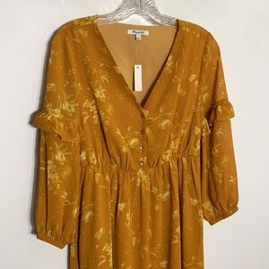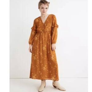Madewell long Ruffle-Sleeve Button-Front Dress maxi Tonal Botanical 00