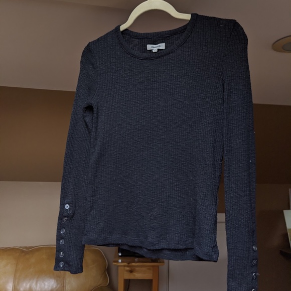 So cozy and button detail on sleeves. Slightly cropped and a little sheer at intentionally thinner spots (see last photo).