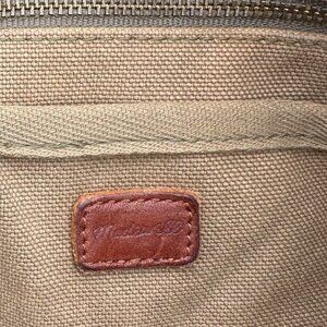 Madewell medium canvas transit tote in army green with leather handle, slight wear and tear and a couple very small marks.