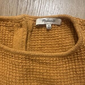 Madewell mustard striped short sleeve sweater with button back Size xsmall. I'm 5,2 120 for reference