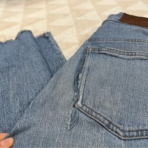 10 3/4" high rise, fitted through the hip and thigh, 13" tapered leg opening, 25" inseam.