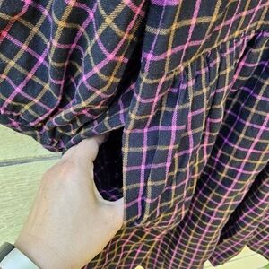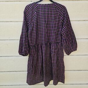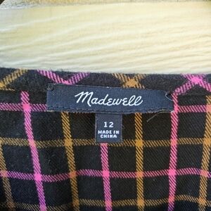 Madewell plaid flannel raglan button-front shirt dress with pockets size 12