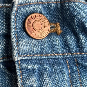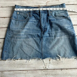 Madewell, raw hem, denim skirt, zipper fly, size 30
