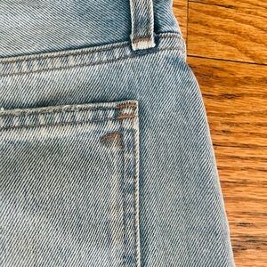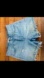 Stylish light blue jean shorts. Features distressed details. Frayed hem for a casual look. Perfect for everyday wear.