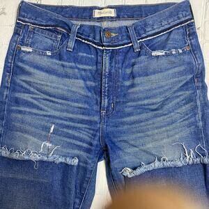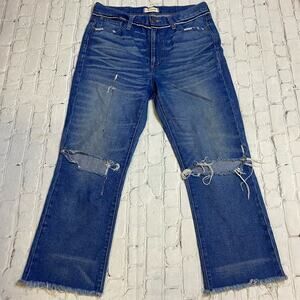 Madewell retro crop bootcut chewed distressed frayed stitched faded Boho 29 mom