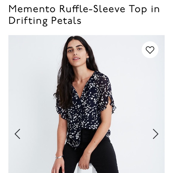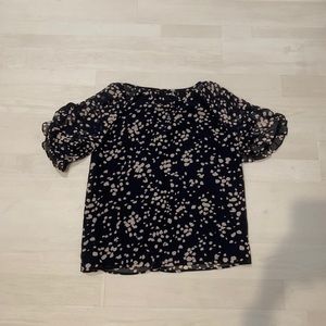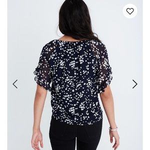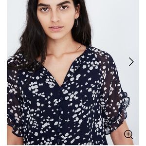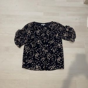 Madewell memento ruffle sleeve top in drifting petals size small. Worn a handful of times. I’d describe the colors as navy and light grey/mauve. No flaws, or pilling. This gorgeous top is no longer available in store, or online. Bundle with other items for additional savings!