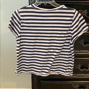 Madewell shirt. Striped blue with lavender embroidered on it as well as a flower. In great condition. Size large.