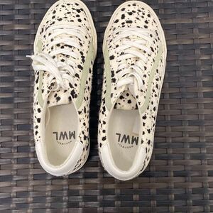 Madewell sidewalk splatter paint calf hair sneakers women’s size 8 in good preowned condition normal wear and tear. See pictures for more details.