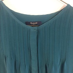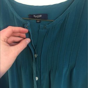 Simple, gorgeous 100% silk blouse from Madewell. Color is a deep teal green. In very good condition. I think the color may have faded a bit from dry cleaning (visible in photos), but it's very subtle. A couple of buttons are on the loose side, but all buttons are attached, and 2 extras are on interior tag. 🎉OFFERS ARE AWESOME!🎉