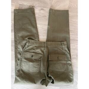 Madewell size 25 army green pants in great condition. Waist measures 14” across. Inseam is 29” and rise is 11 1/2”.