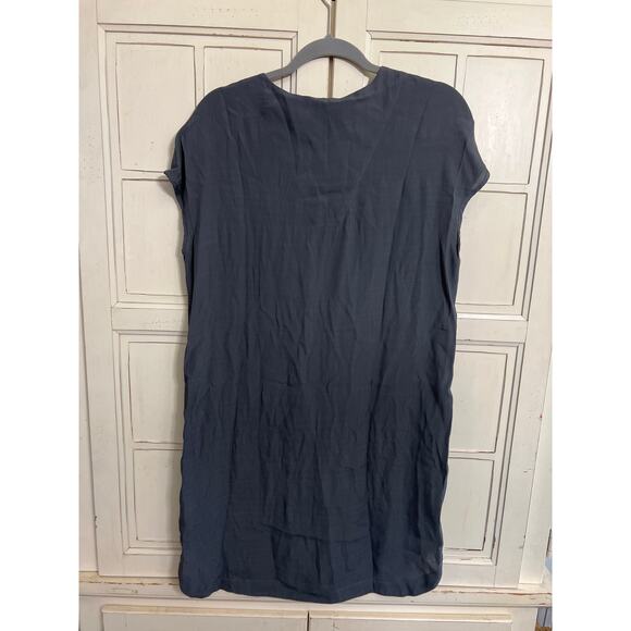 Madewell size small dark gray mini dress with pockets. 100% viscose. Measures 20” from armpit to armpit. 21” across the waist and it is 35” long.
