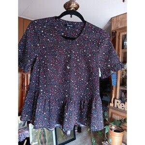 Madewell size xxs linen short sleeve ruffle hem shirt tiny star pattern NWT