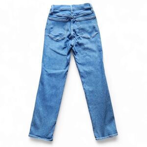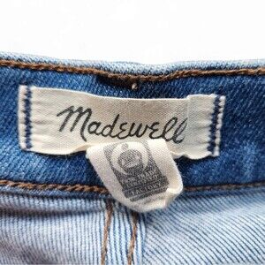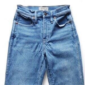 Madewell stove pipe jean size 23. 12-in flat waist. 26 in inseam. Has a little bit of puckering as pictured. For me the puckering went away when put on.