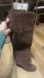 These beautiful boots are made of natural suede in a brown mocha sort of color. These are preloved, but are still in great condition with minimal signs of use. I would say they run slightly big as I’m usually a 6.5, but these fit perfect. I also have slightly larger calves and boots this high don’t usually fit, but these do. Maybe it’s the cut out in the back 🤷🏽♀️ I’m not sure. But these are very well made. (Get it😉)