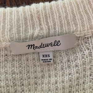 Cream colored. Waffle knit texture. Boxy fit, very comfortable. Never worn.