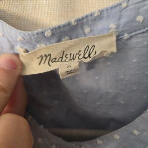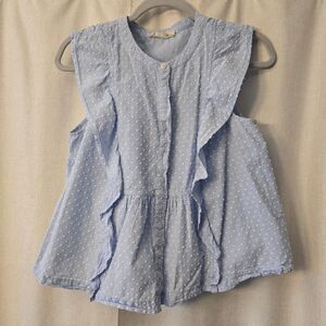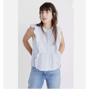 Madewell swiss dotted ruffle top - size medium - blue/white