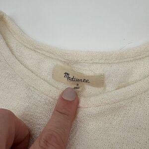 This Madewell cream tee is a versatile wardrobe staple, featuring a relaxed fit and short sleeves. Crafted from soft material, it offers comfort and style for everyday wear.