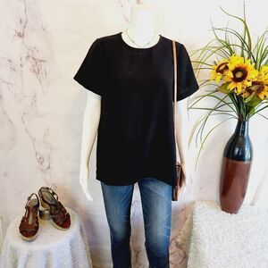Excellent condition no flaws Madewell pullover black crepe textured dress down or up versatile top with keyhole back button neckline size medium single pleat in back