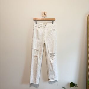 Madewell the perfect vintage straight jean in White. Features a waist-accentuating high rise complete with the holds-you-in sorcery of madewell’s Magic Pockets in front. Zero see-through and a touch of body-hugging stretch so they won't bag out. In good condition. No holes, rips, or stains. Ours is a smoke free home.