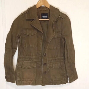 madewell army green utility jacket ..it's in good condition has small dot on collar..has 4 front pockets . approx. measurements are provided in pictures.. they are taken flat lay ........1957