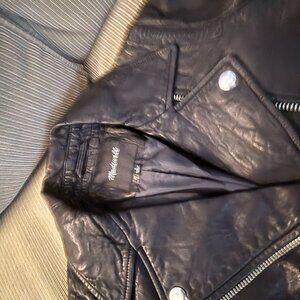 This is the great Madewell very soft washed leather moto jacket. It is a size small which runs small so consider your personal size. This is brand new and never worn. it was too small for me. A great classic jacket!!