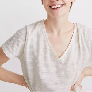 Madewell white Textured V-Neck Setlist Boxy Top size large NWT