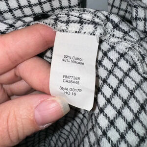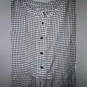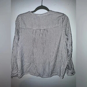 Great used condition no signs of wear. 3/4 sleeve button up white and black plaid flannel feeling material.