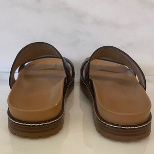 Stylish and comfortable black slide sandals perfect for any casual outing. Minor wear on toe and heel shown in pictures above.