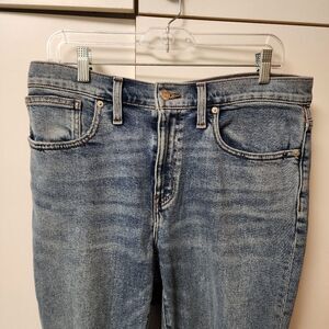 preowned very good condition Madewell womens distressed roadtripper slim boy jeans sz 29 petite beachy casual