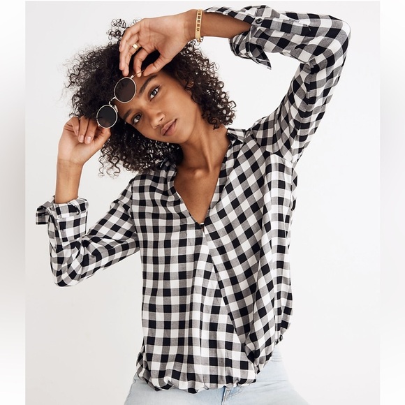 Madewell wrap front shirt in Buffalo check black white size small j8069 in excellent condition, no flaws. Button front so stays closed