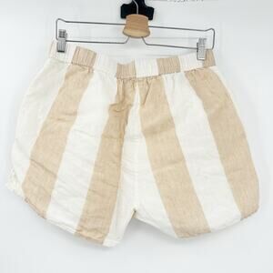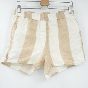 Madewell X Laude The Label Womens Beachy Lounge Everyday Striped Linen Shorts in Tulum Stripe Tan White. Size Large.