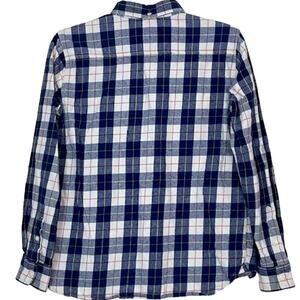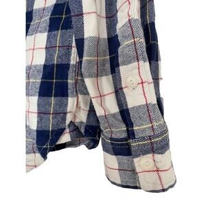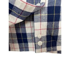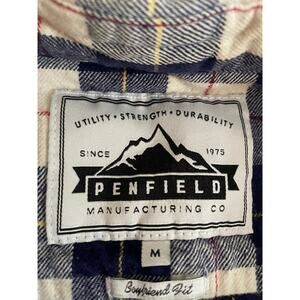 Madewell Flannel circa 2010s, collaboration with Penfield, excellent construction and quality materials, features chambray lining on the collar and cuffs as well as the button placket. Plaid with blue and white with red and yellow. EUC, labeled size M, please check measurements! This is a slim fit (great for layering), not the oversize Madewell of late.