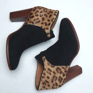 Madewell x Sezane Booties Leather Suede Leopard Calf Hair Heeled Booties Size 7