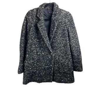 Madewell x Sezane Tweed Wool Blend Double Breasted Blazer Coat Black Size XS
