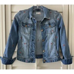 Madewell x crewcuts Kids' Strawberry 🍓 Embroidered Jean Jacket Sz 12. EU…