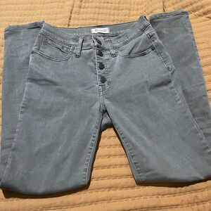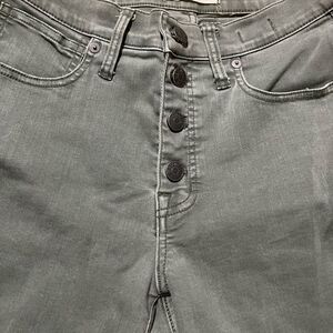 Madewell 9” High rise skinny jeans 27 khaki green button fly 5 pockets in great condition no rips or stains