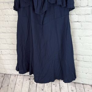 Elegant deep blue dress featuring ruffle accents and a chic design.