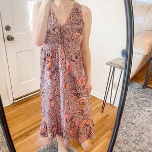Madewell Bali Blooms Lace-Up Ruffle Hem Midi Dress 8
