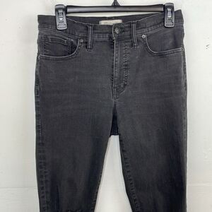 Madewell Black 9” High-Rise Skinny Jeans Distressed with Raw Hem size 28