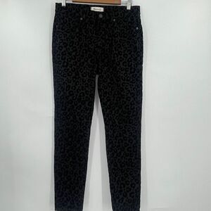 Madewell Black 9” Mid Rise Flocked Leopard Print Skinny Jeans Size 28