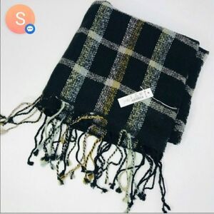 Soft and cozy plaid scarf in black gold and grey. NEW WITH TAGS