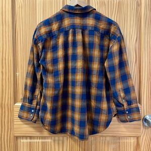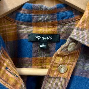 Madewell Blue, Rust, and Brown Oversized Plaid Flannel Shirt Jacket Shacket