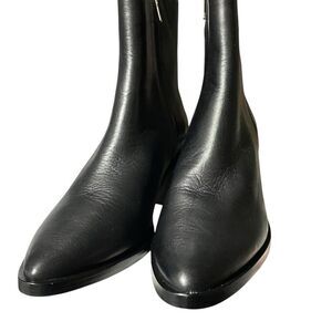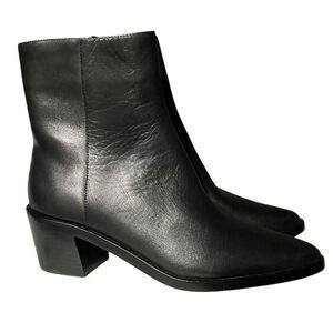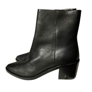 Madewell Booties 7.5 The Darcy Black Leather Almond Toe Ankle Boots Stacked Heel