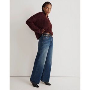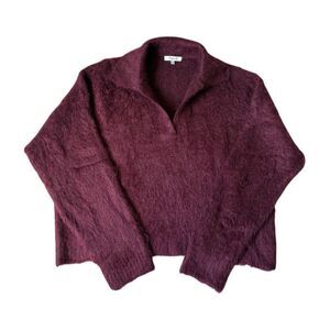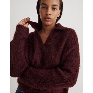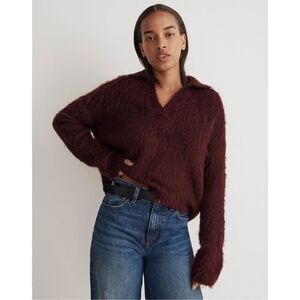 Madewell Brushed Polo Sweater size M Heather Currant Red Fuzzy Soft
