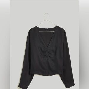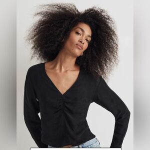 Relaxed with ruching along the front, this V-neck top is crafted of a drapey brushed fabric. Pair with your favorite jeans for an effortless look.