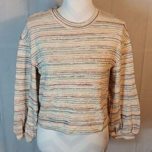 Madewell Bubble Sleeve Crop Rainbow Striped Sweater