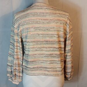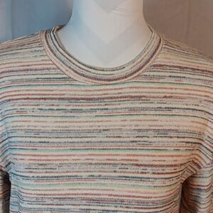 This Rainbow Striped long sleeve Madewell cropped sweater is a size Small with a pit to pit measuring 19" and a length of 18". In excellent condition. All offers are welcome.